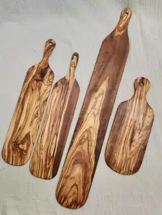TABLA DE OLIVO ALARGADA C/MANIJA 77X11CM